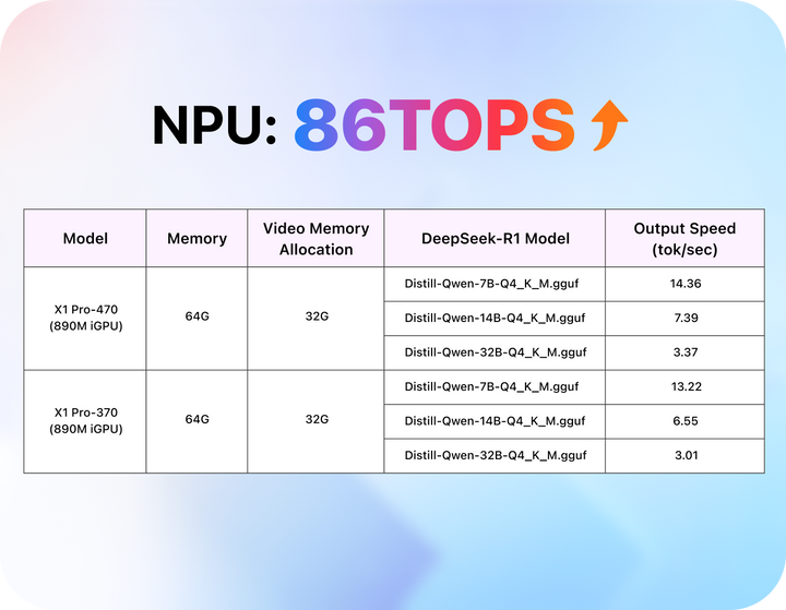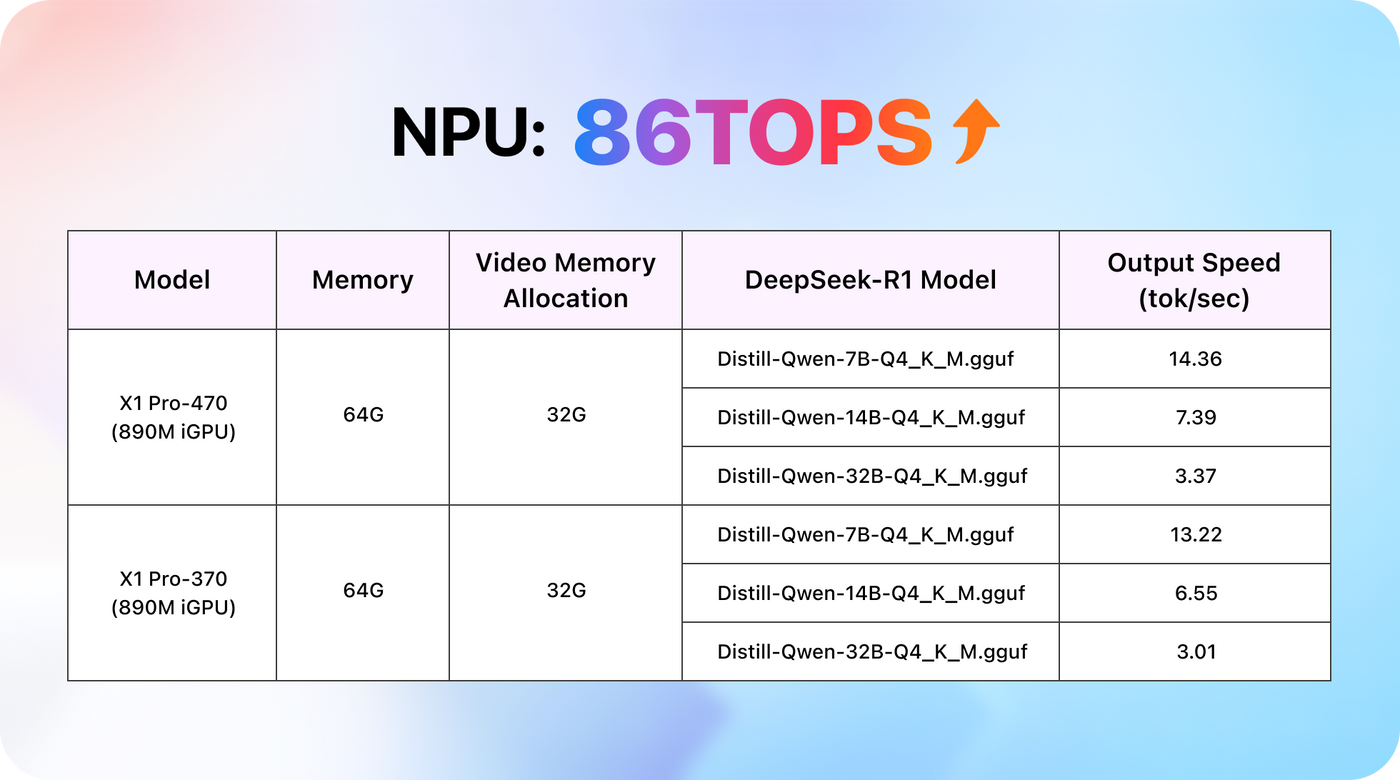 86 TOPS makes everyday AI tasks faster and steadier. Faster response, lower latency, better control—bring AI writing and lightweight inference back on-device and stop waiting on cloud queues.
