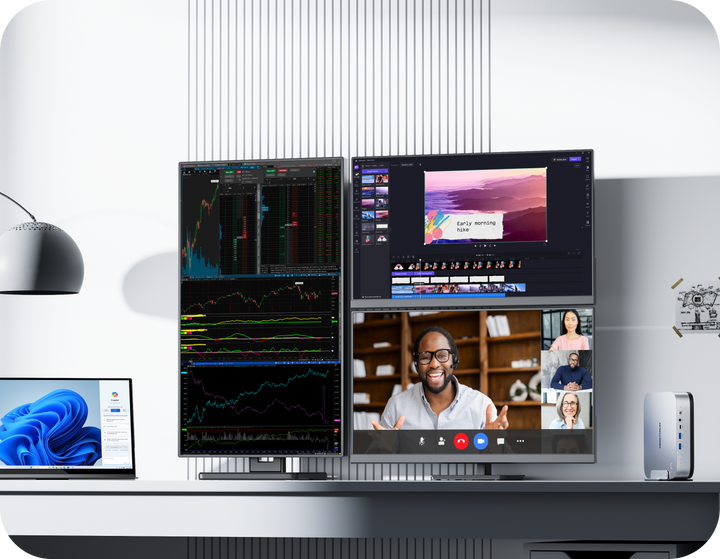 Connect up to 4 displays via HDMI + DP + dual USB4