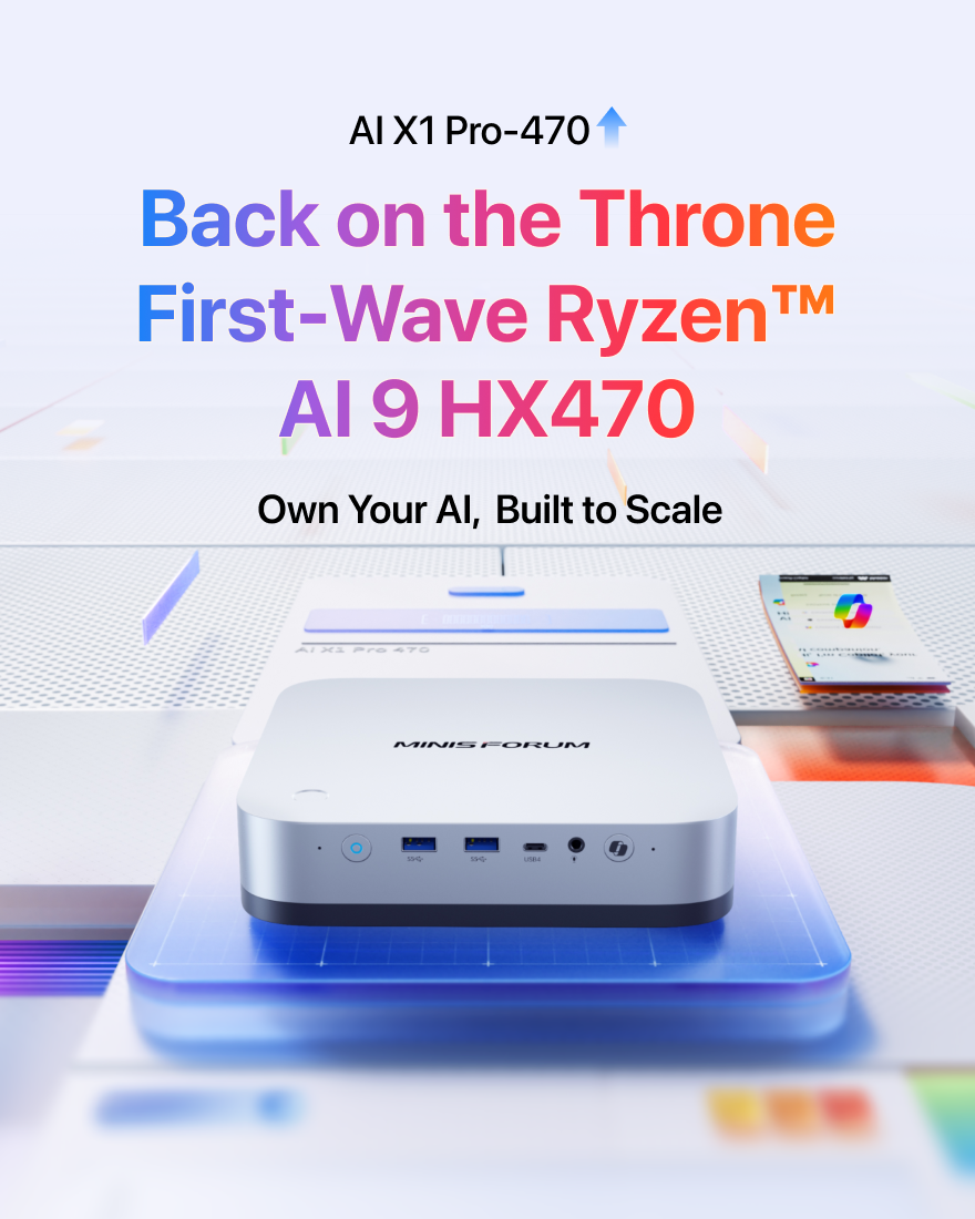 Utilize the cutting-edge AMD Ryzen™ AI 9 HX 470 processor, step into the future with the MINISFORUM AI X1 Pro. Experience next-level AI technology that supercharges multitasking, boosts productivity, enhances teamwork, and delivers efficiency like never before.