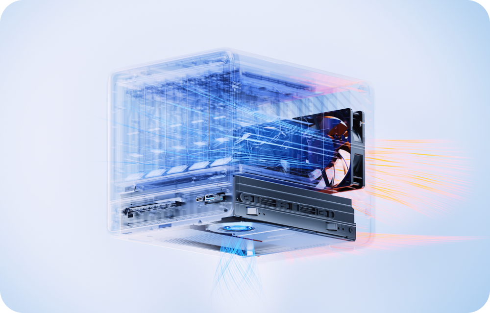 Dual 9225 large axial fans actively cool HDD bays, ensuring stable and cool operation at all times.