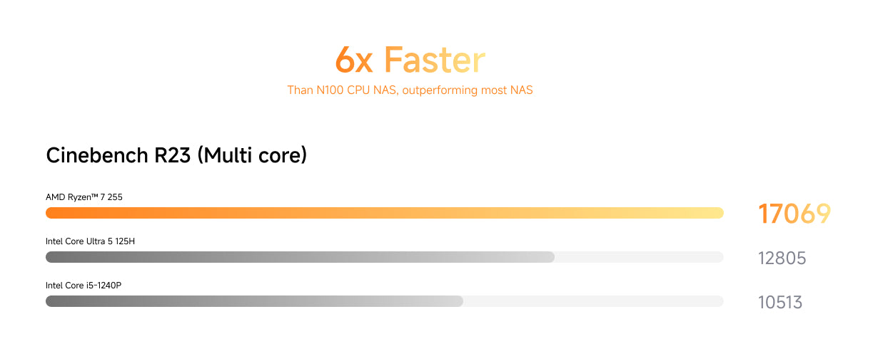 Delivers robust multi-threaded performance for concurrent access and fast file retrieval. Outperforms N100-class NAS in media decoding, offering signitficantly stronger overall performance.