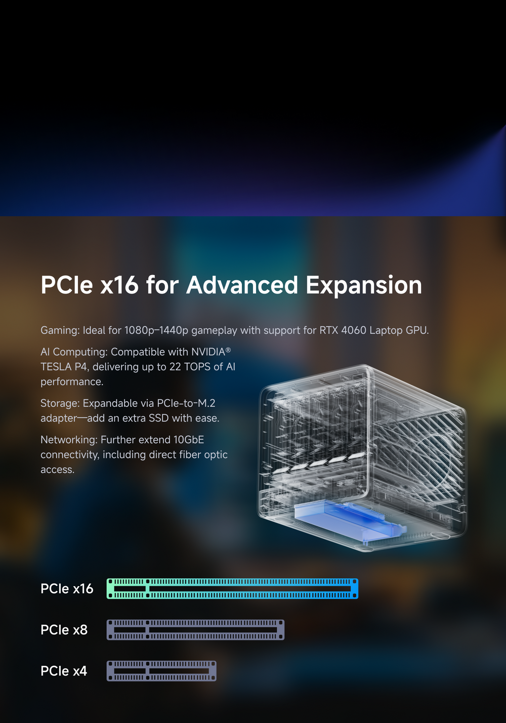 - 1 x M.2 2230/2280/22110 NVME SSD(up to 4TB,PCIE4.0 x1)