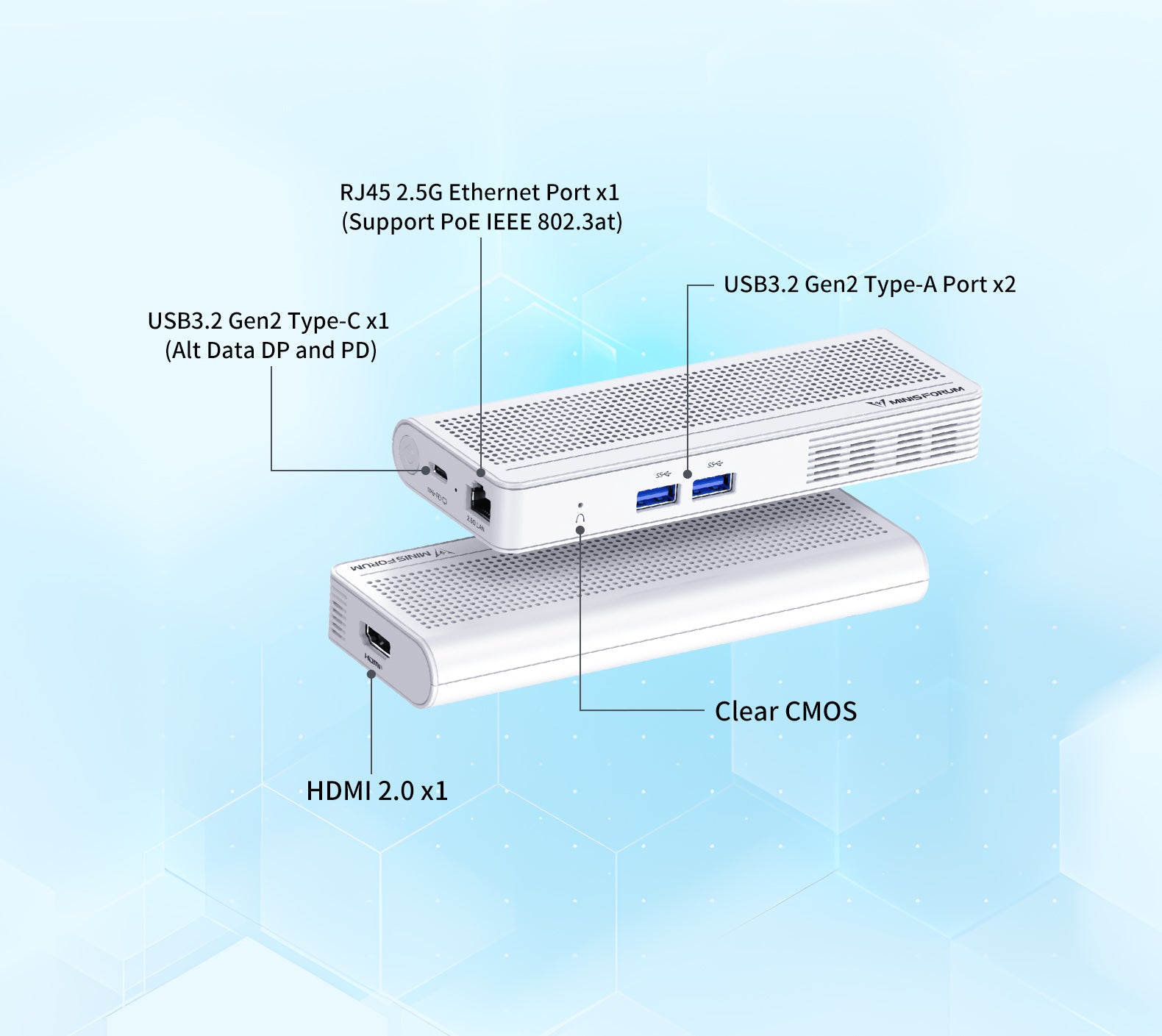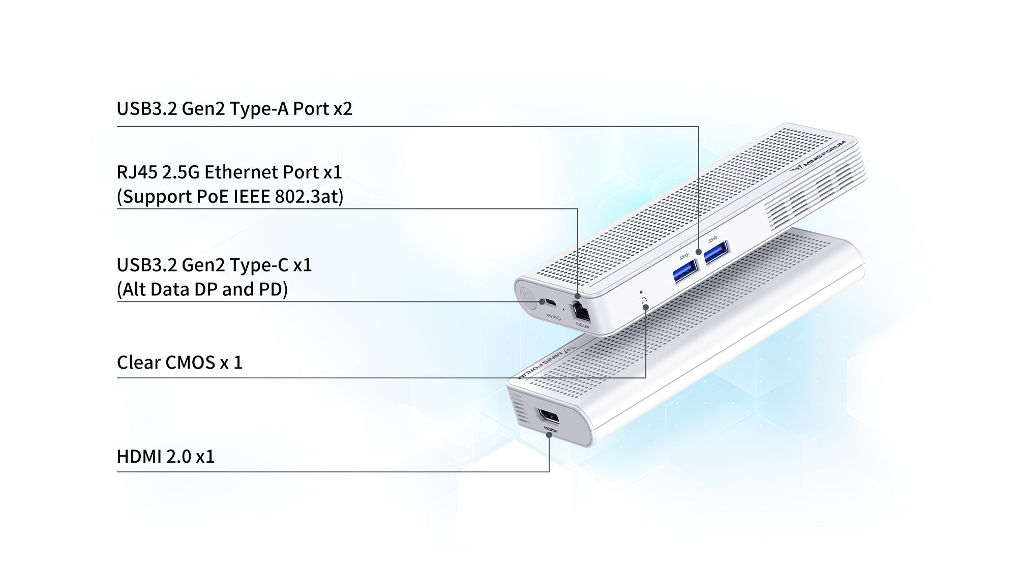 The S100 RJ45 2.5G network port supports Power over Ethernet (POE) technology, enabling power supply to the PC through this network port.