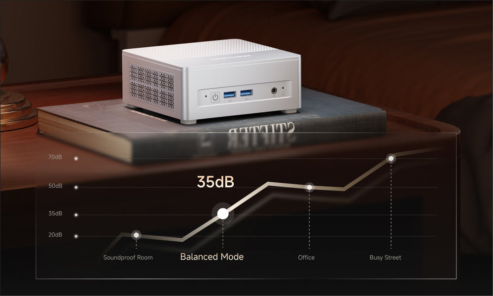 Noise levels stay below 35 dB during everyday use, virtually imperceptible for undisturbed focus