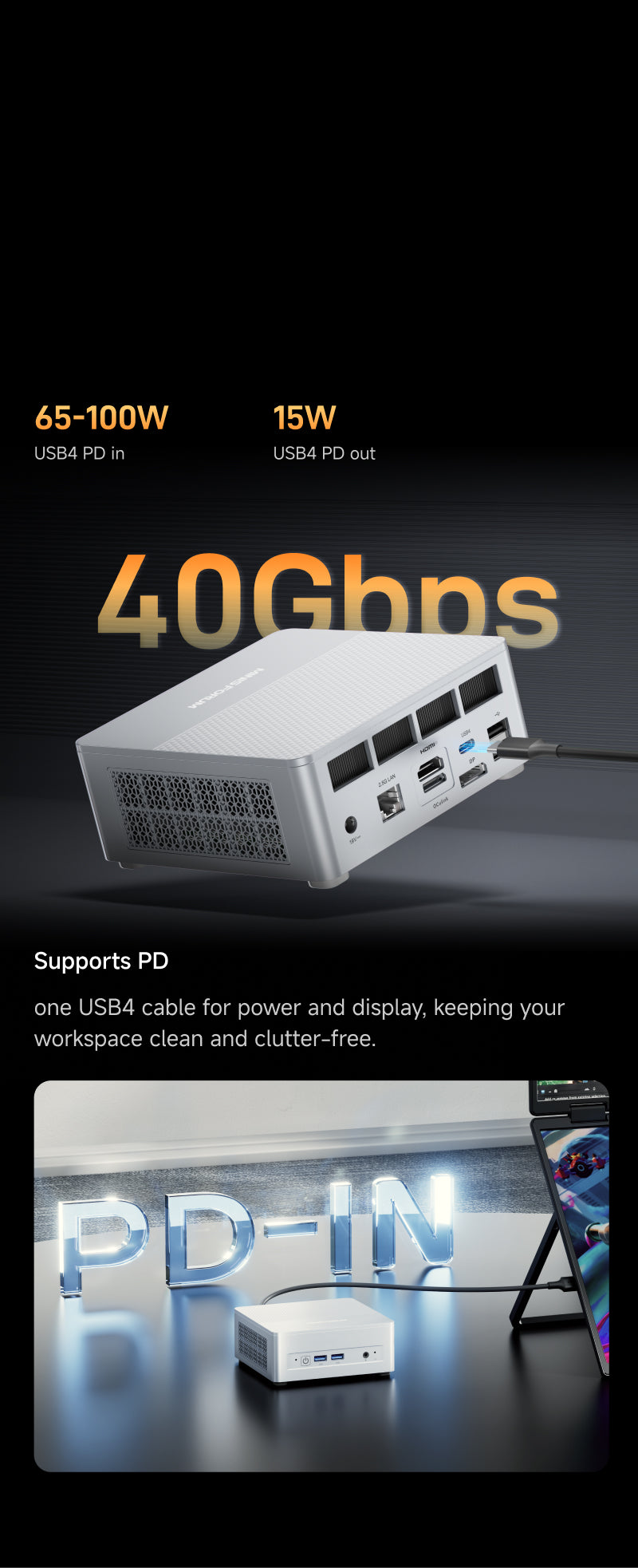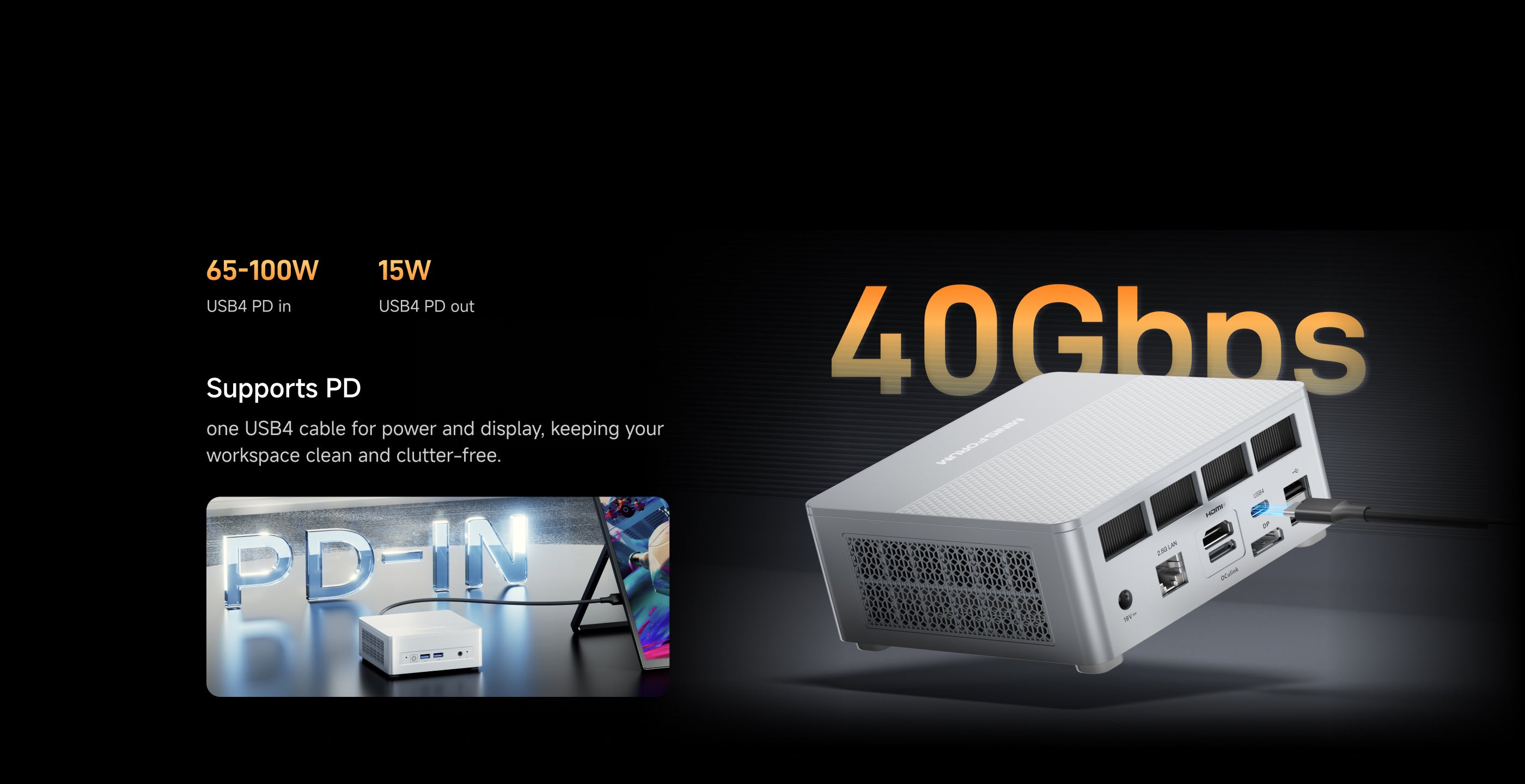 USB4 Type-C × 1 (40Gbps, PD 65-100W input & 15W output)