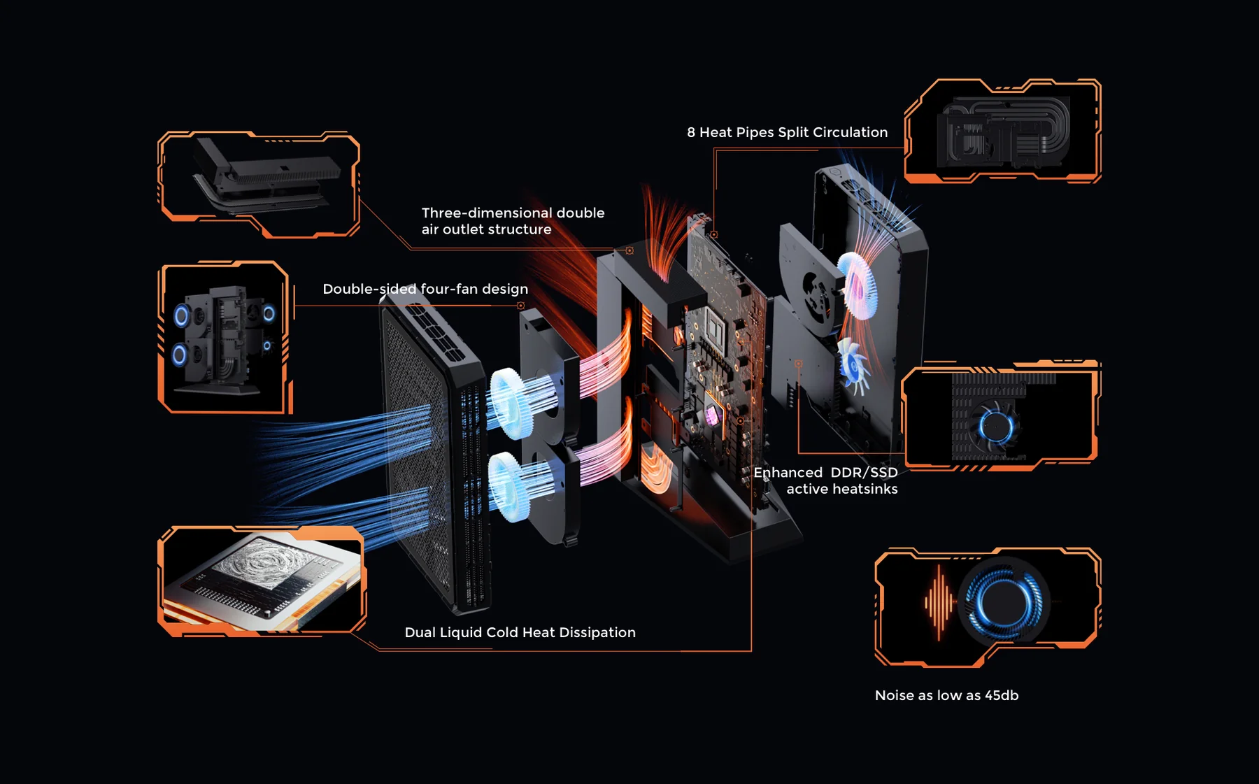 The exclusive patented technology of the Cold Wave Ultra cooling architecture achieves a max of 205W overall cooling capacity, enabling sustained high-load operation for extended periods with 3A games, graphics processing, and AI applications.