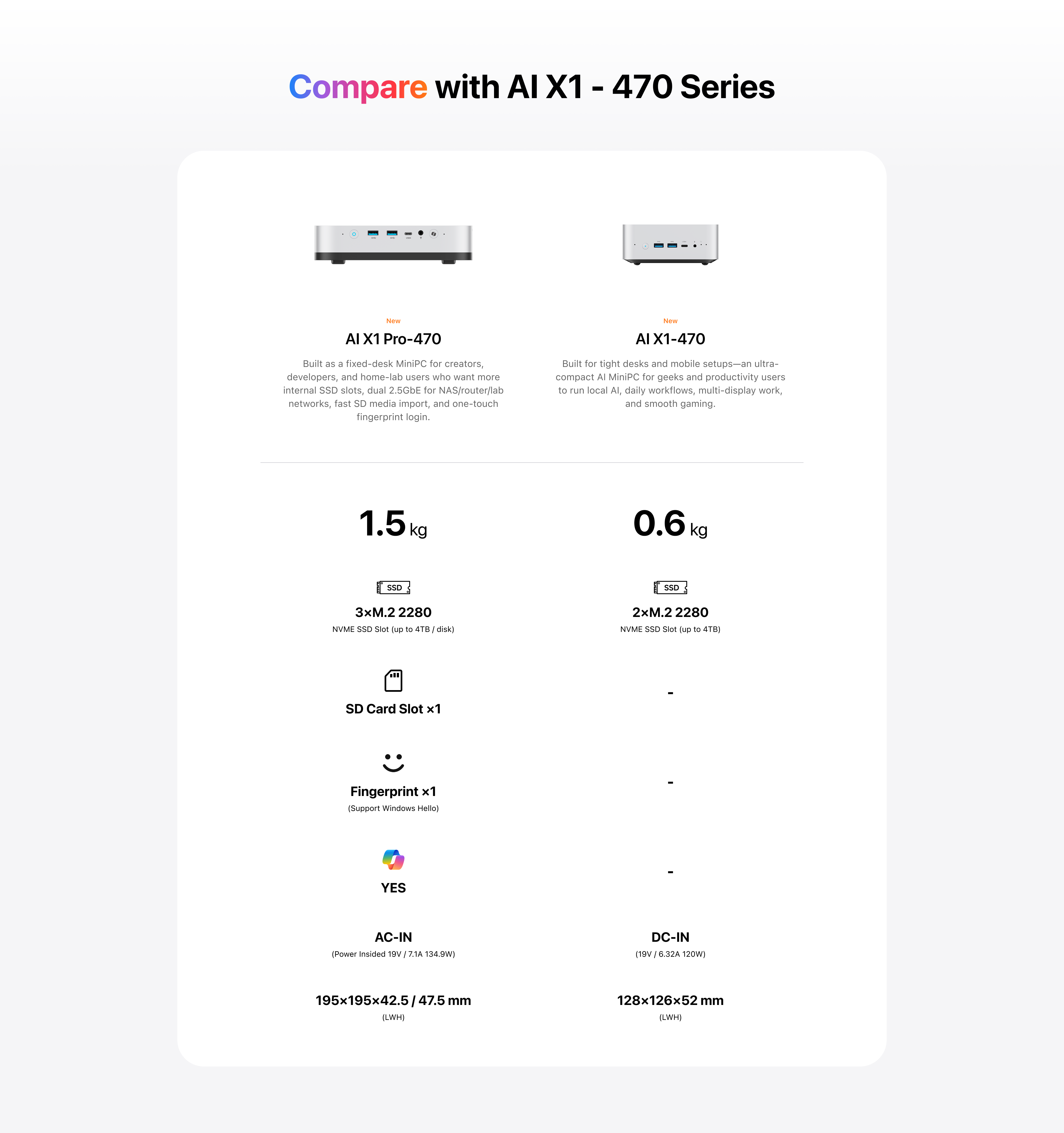 Utilize the cutting-edge AMD Ryzen™ AI 9 HX 470 processor, step into the future with the MINISFORUM AI X1 Pro. Experience next-level AI technology that supercharges multitasking, boosts productivity, enhances teamwork, and delivers efficiency like never before.