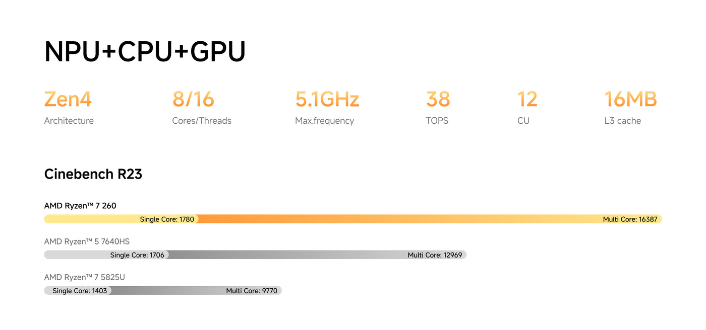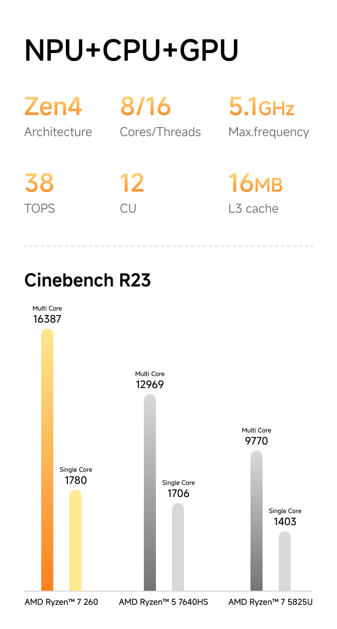 The AI X1, equipped with the AMD Ryzen™ 7 260 processor, combines top-tier performance with a compact design. Perfect for multitasking, gaming, and demanding tasks—power meets portability in one sleek package.