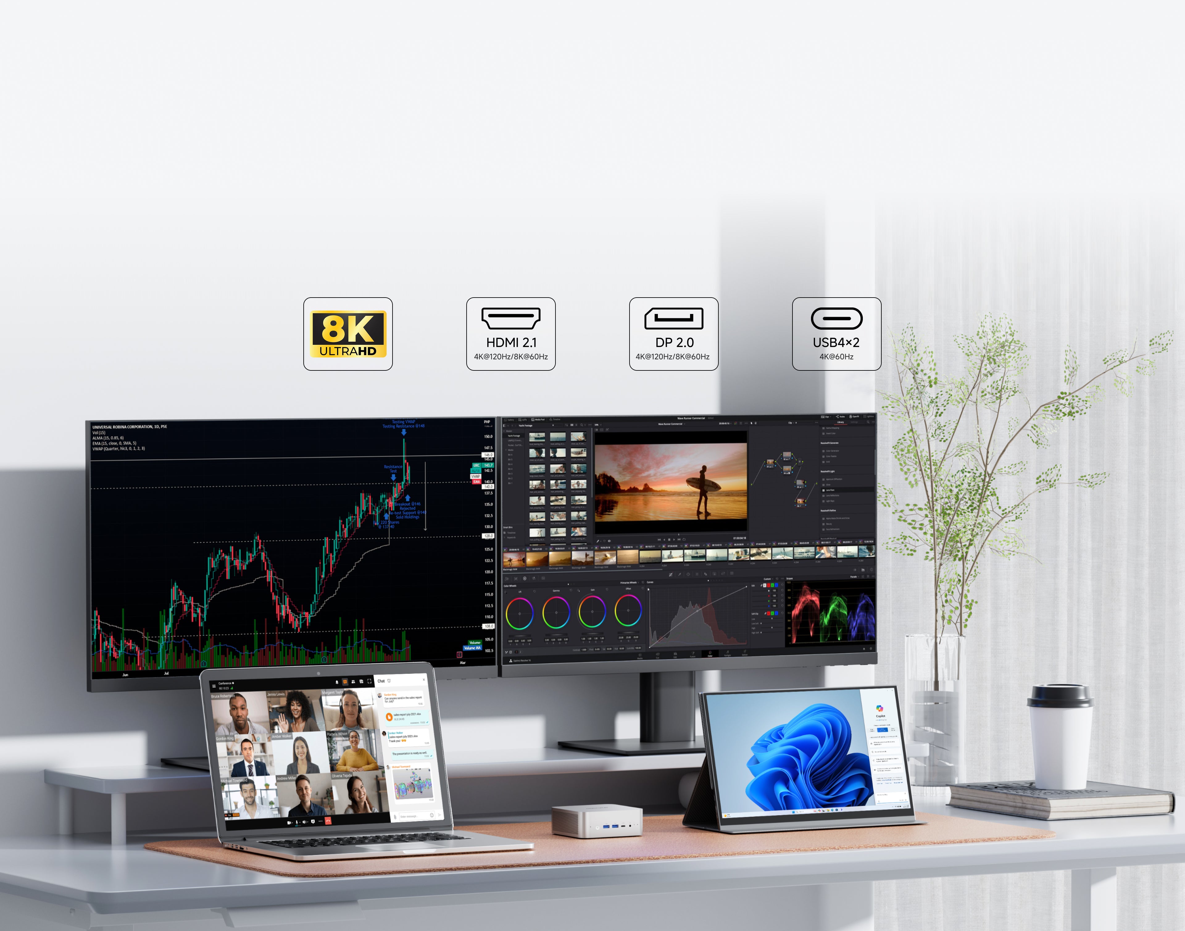 With a data transfer speed of up to 40 Gbps, large amounts of data can be transferred in a very short time, which greatly improves the work efficiency of users who need to transfer large files frequently. A high-performance external graphics card via USB4 can dramatically increase graphics processing power by supporting higher resolution output and a multi-monitor display.