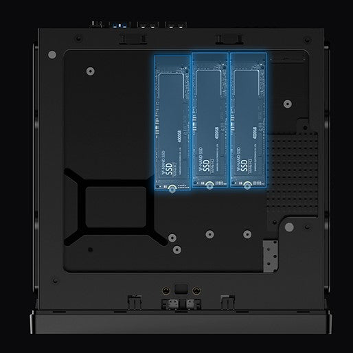 It also supports enterprise-class storage, allowing for expansion up to a total maximum of 24TB with a configuration of one U.2 NVMe SSD and two 22110 M.2 NVMe SSDs. This meets the demands of professionals who require high-capacity storage.