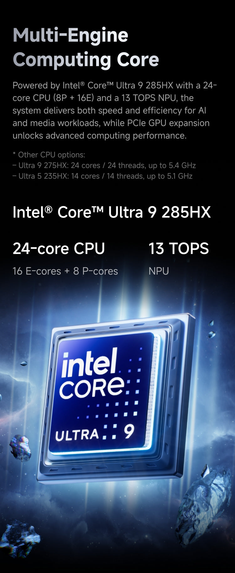 - Optional Intel® Core™ Ultra 9 285HX | 275HX | Ultra 5 235HX