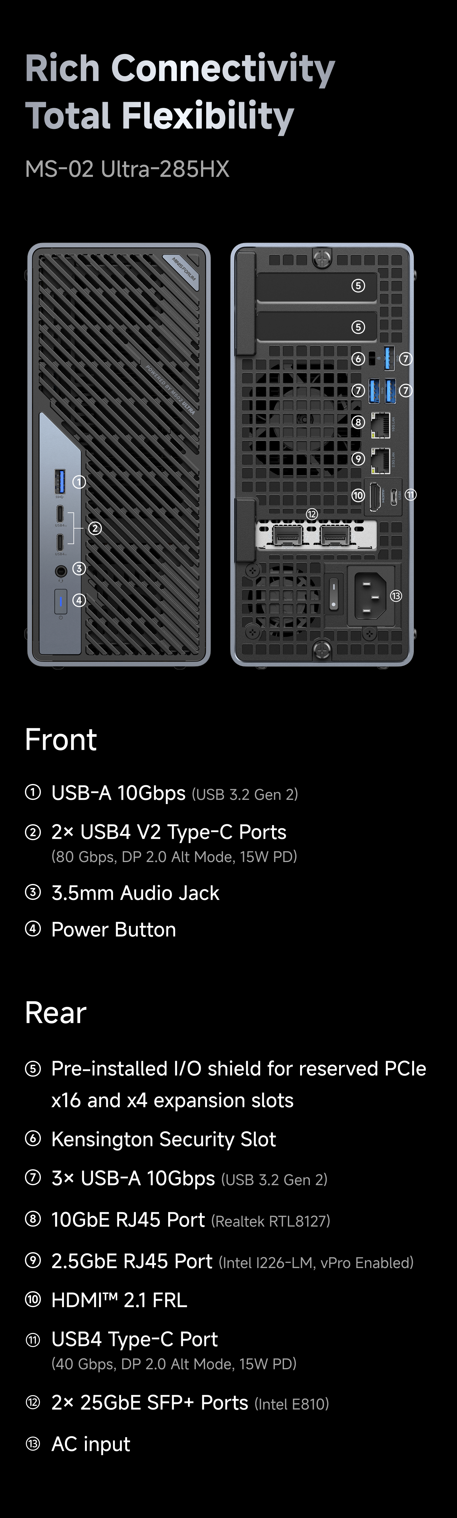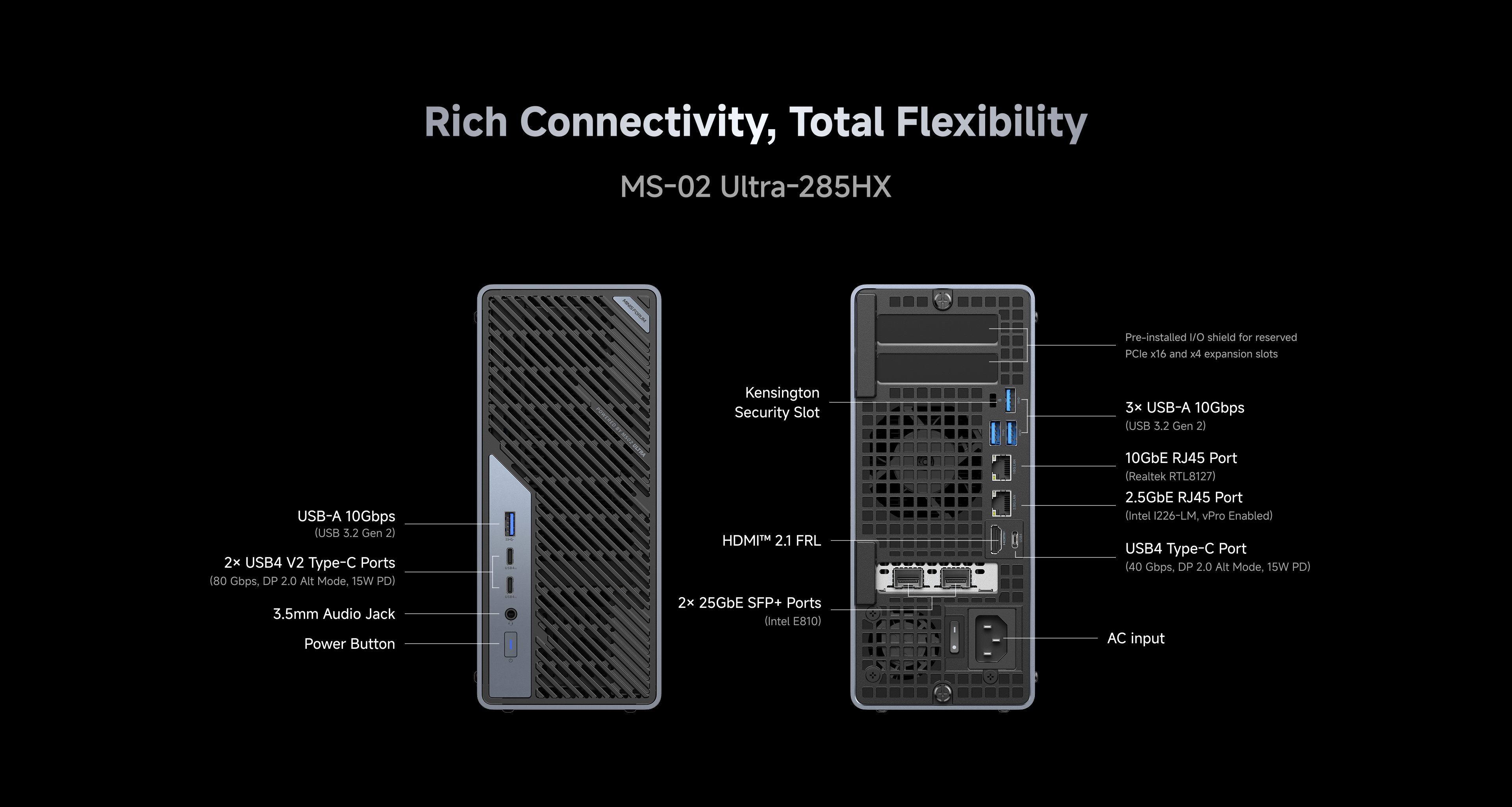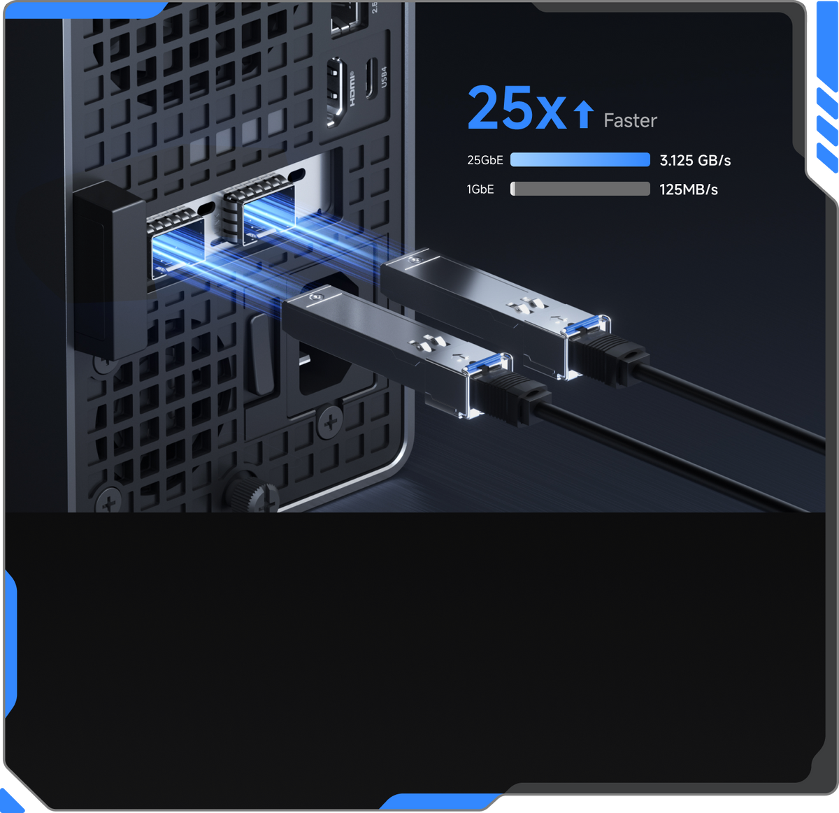 - Dual 25 GbE with 10 GbE & 2.5 GbE LAN & USB4 v2