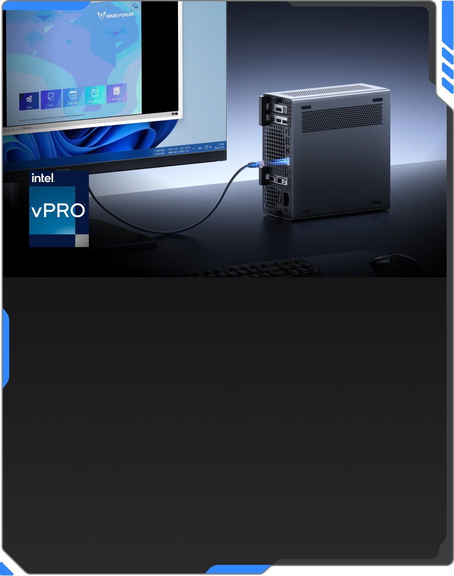Intel® vPro® with BIOS-level KVM enables full remote control and 24/7 uptime.
