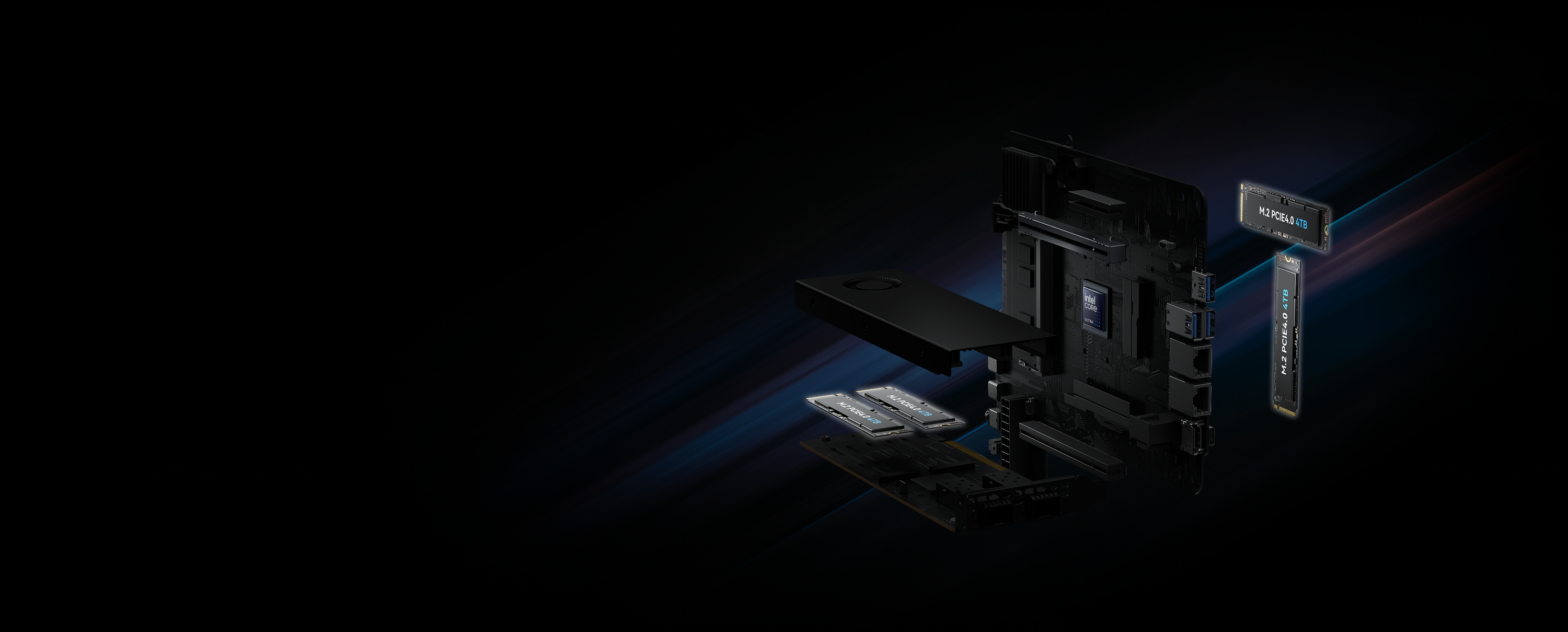 4x M.2 2280 slots supporting both PCIe 4.0 x4 NVMe, expandable up to 24 TB total capacity with RAID 0/1/5/10, enabling independent drives for projects, media, and cache with ultra-fast performance.