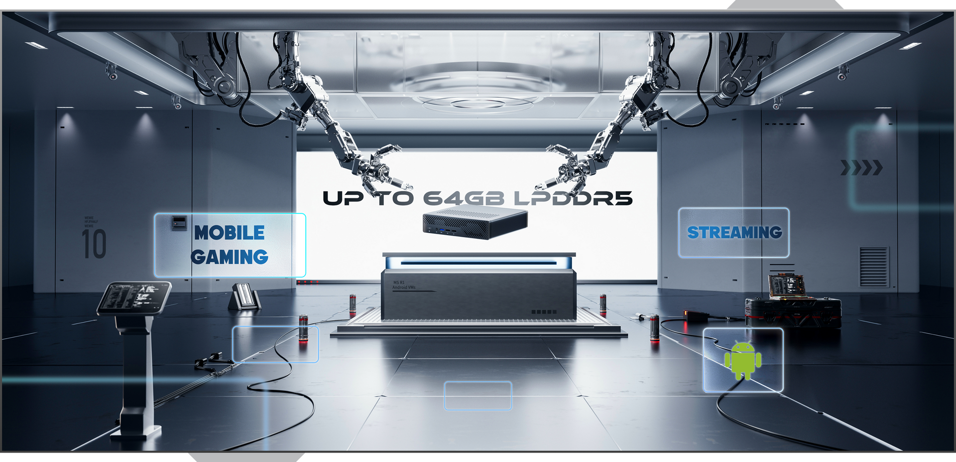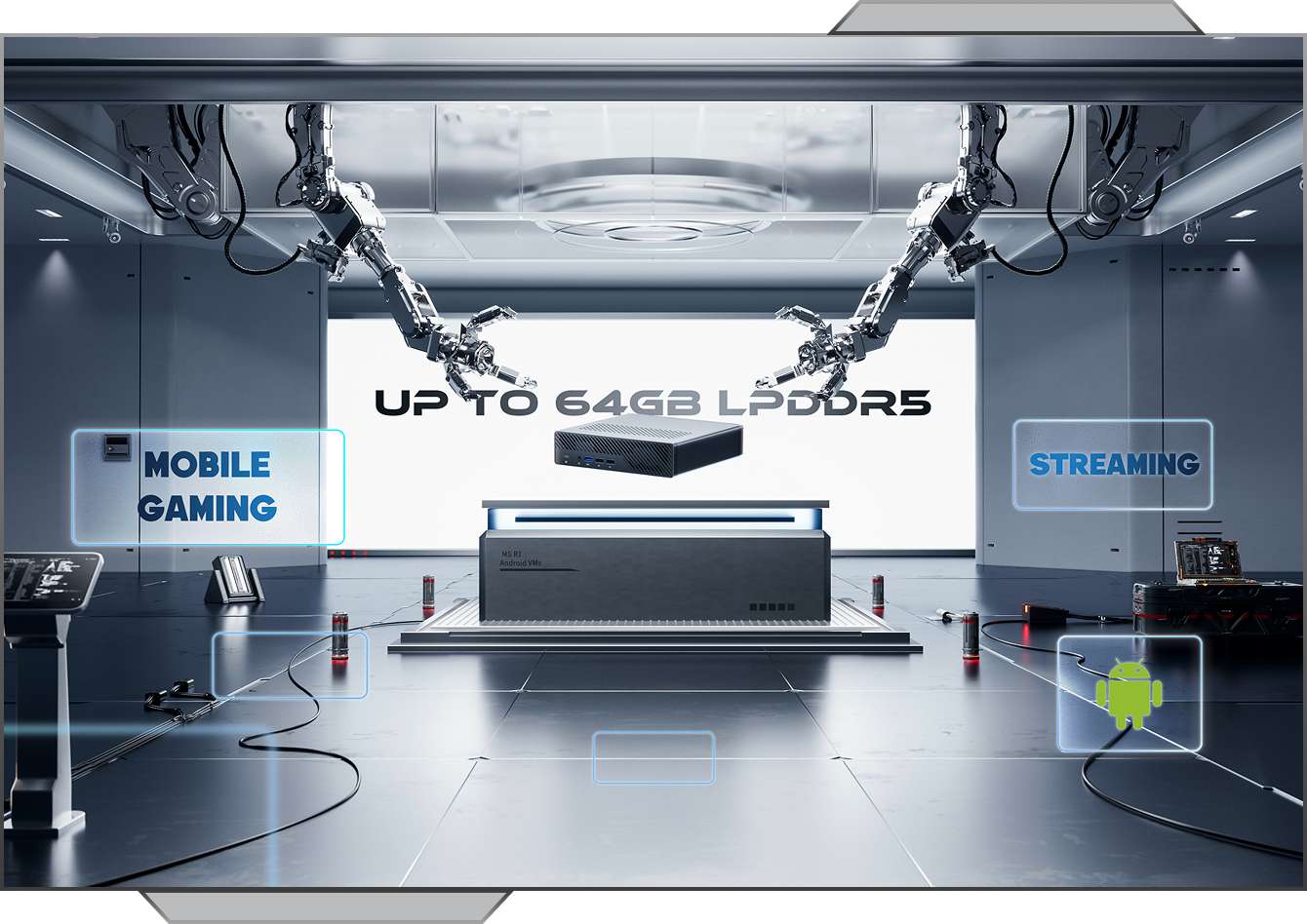 Optimized for containers and Docker-based Android VMs. Up to 64GB LPDDR5 memory with ECC Supported*