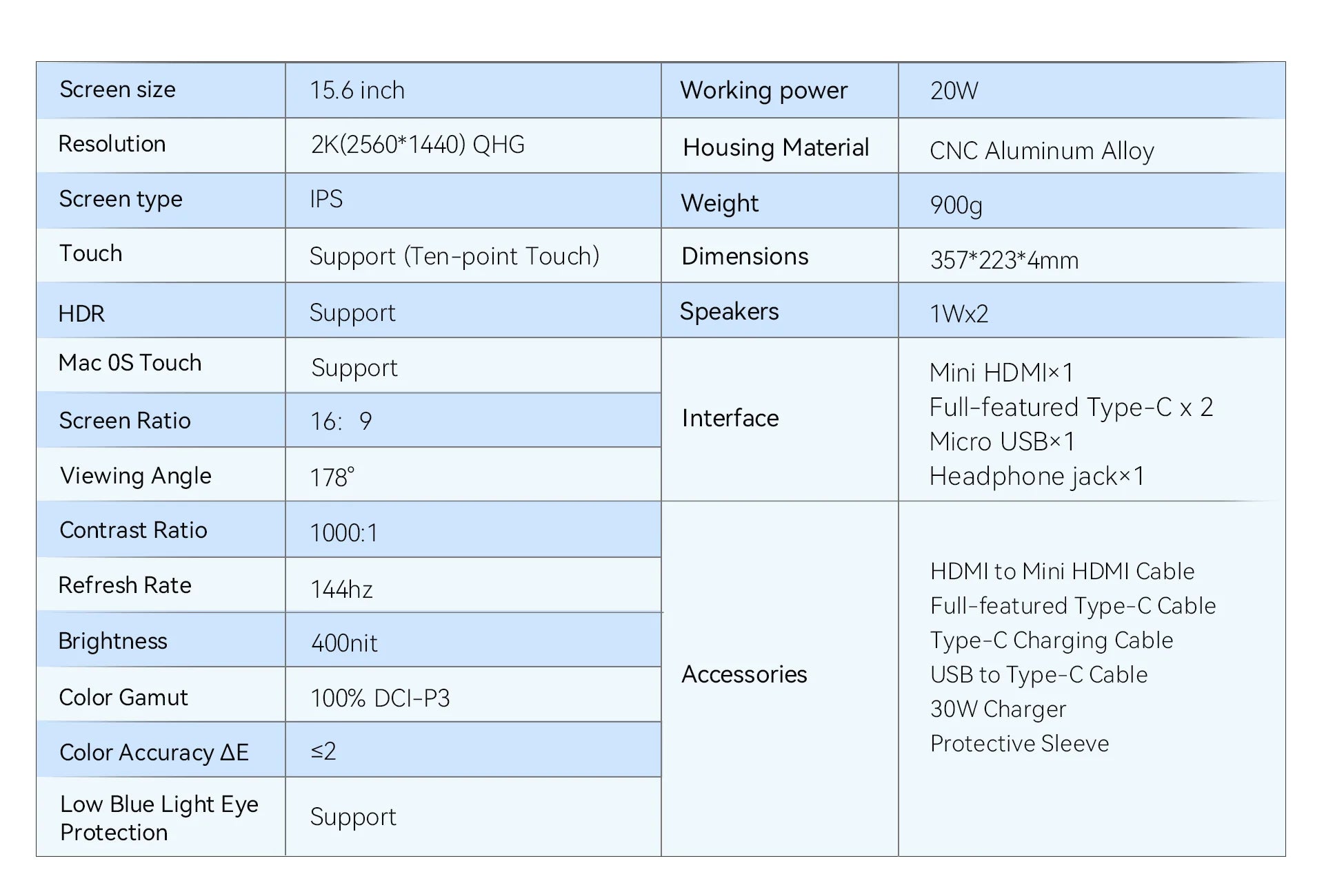 This ultra-thin and lightweight 15.6" portable monitor, featuring a 2K high resolution, enhances productivity and entertainment by extending screen real estate for diverse applications.