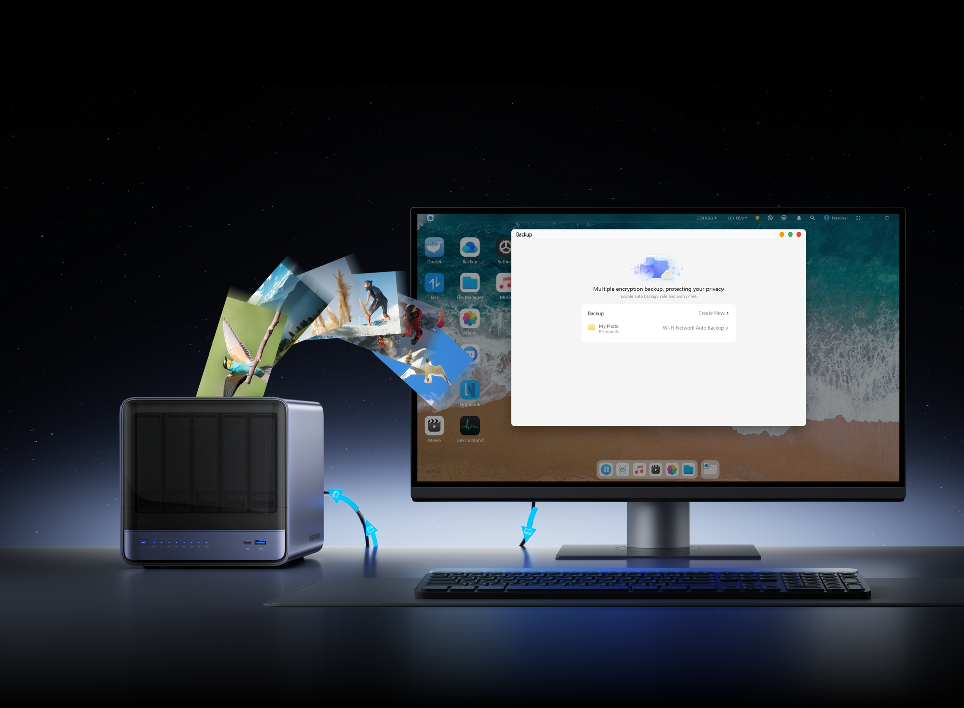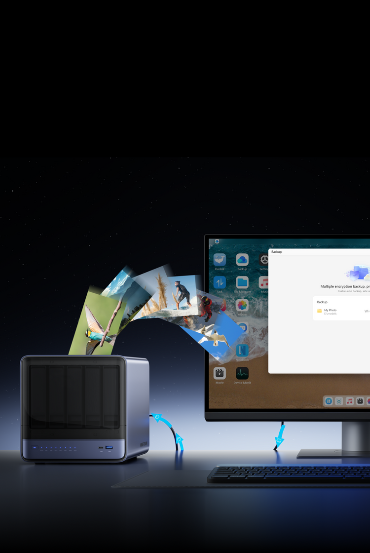 Supports RAID 0/1/5/6 with flexible storage strategies, balancing performance and security.