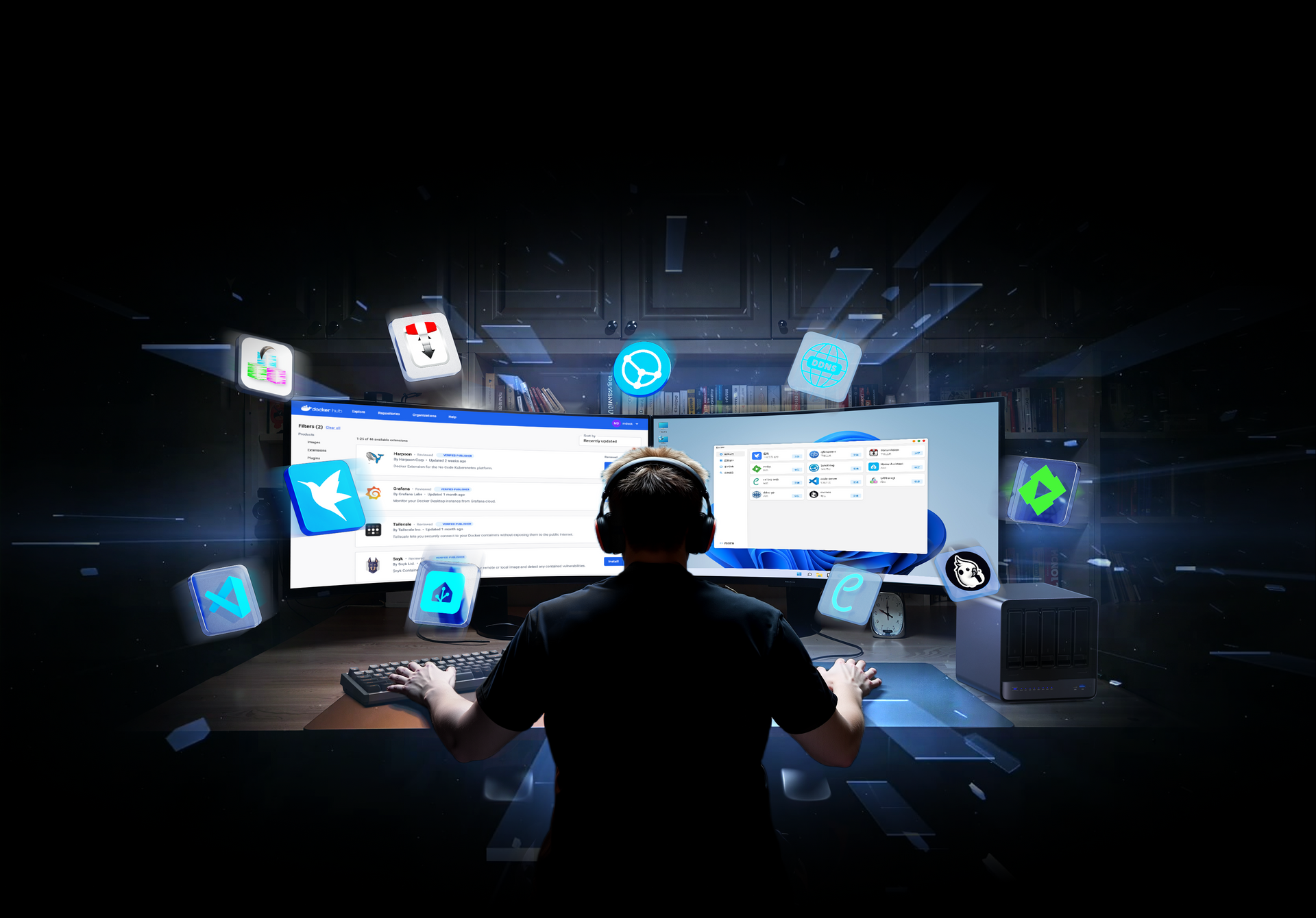 Effortlessly deploy hundreds of Docker applications, from AI training to remote downloads.