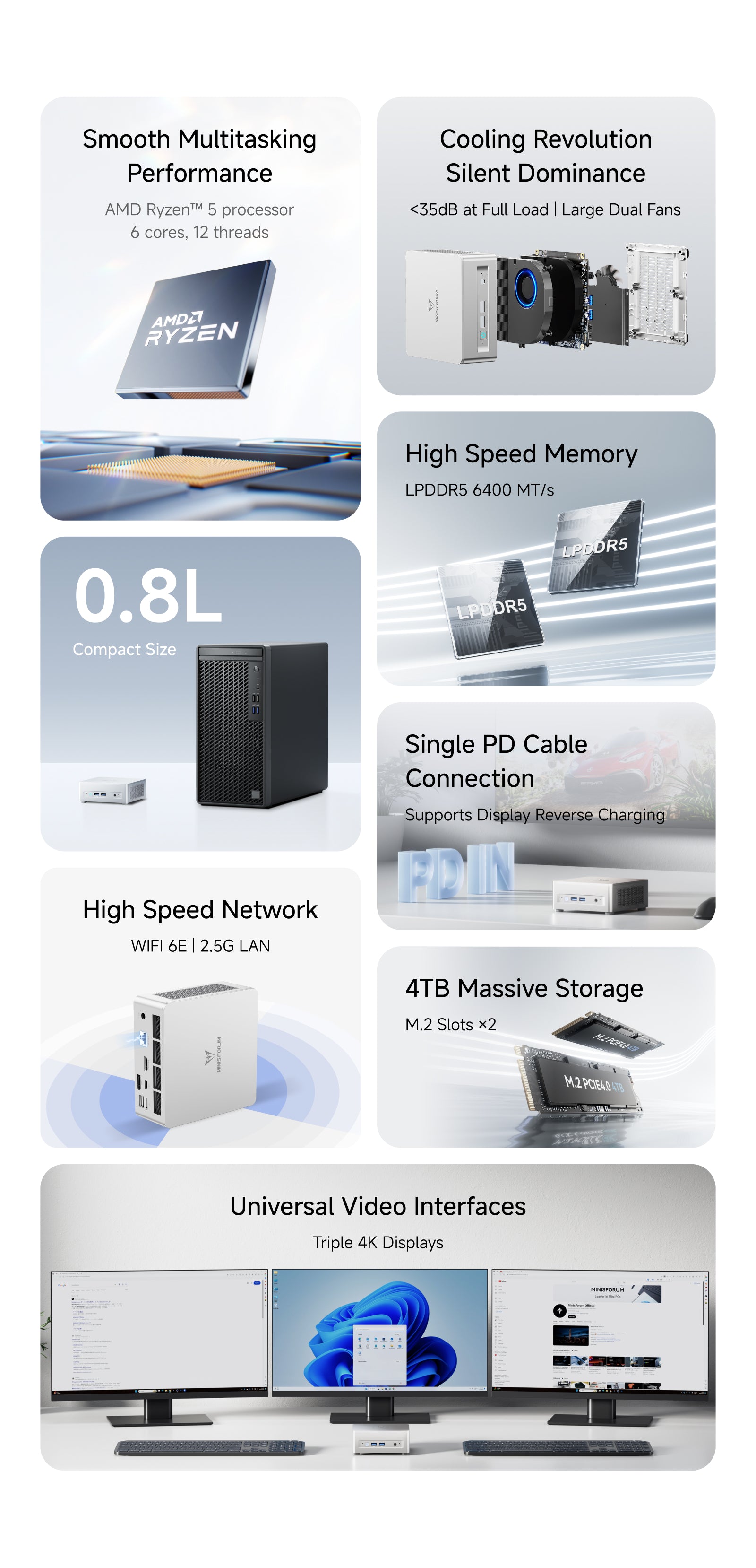 Minisforum UM750L Slim Featuring AMD Ryzen™ 5 7545U Processor — Powerful Performance in a Compact Mini PC with 6 Cores and 12 Threads for Seamless Multitasking and Enhanced System Efficiency.