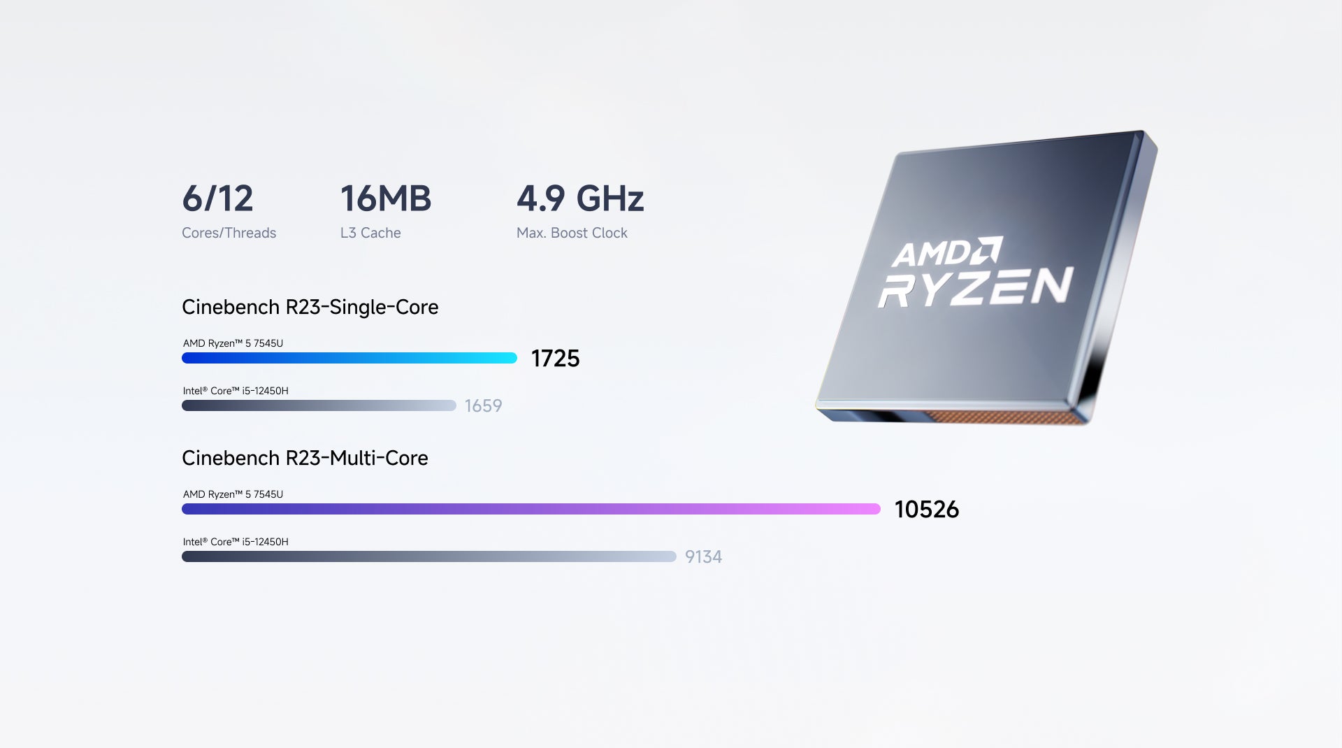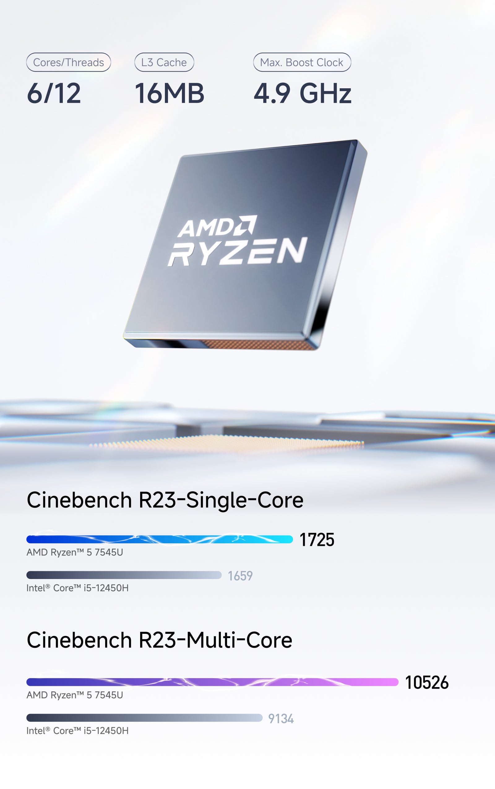 AMD Ryzen™5 7545U, 6 Cores/ 12 Threads,Max.4.9Ghz